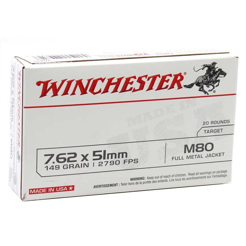 Winchester USA 7.62x51mm NATO Ammo 149 M80 Grain Full Metal Jacket – WM80